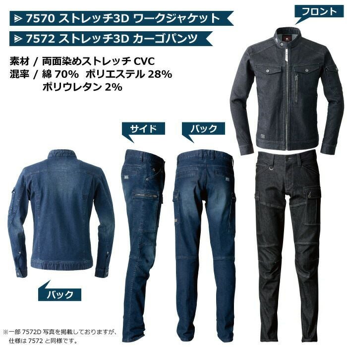 アイズフロンティア 作業服 上下セット 7570 ジャケット と 7572 カーゴパンツ ストレッチ 3Dパターン シャープ ライダース タフ 春夏秋冬
