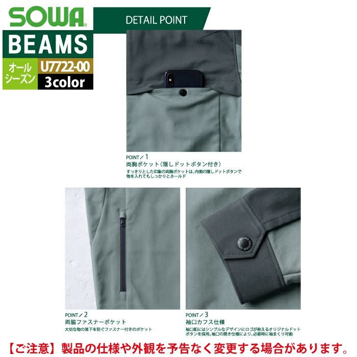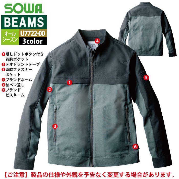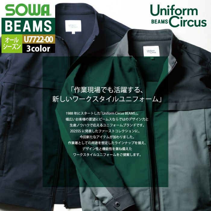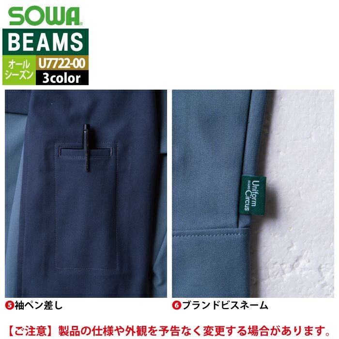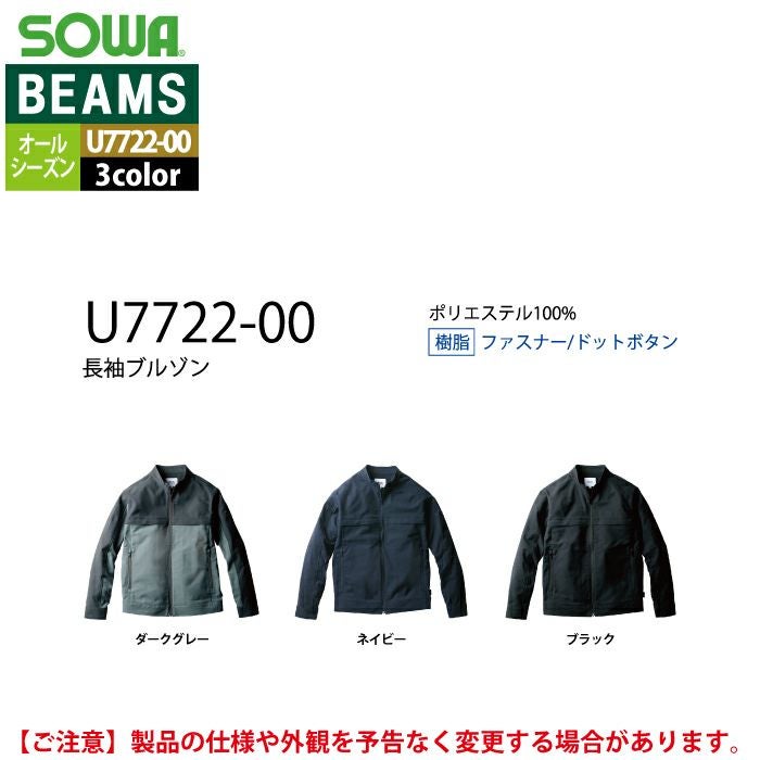 作業服 作業着 秋冬用 BEAMS ビームス 桑和 SOWA 作業服 U7722-00 長袖ブルゾン S-LL オールシーズン 作業着 ソーワ ワークウェア BEAMS ビームス