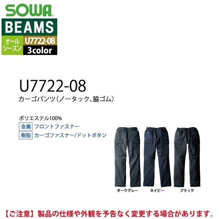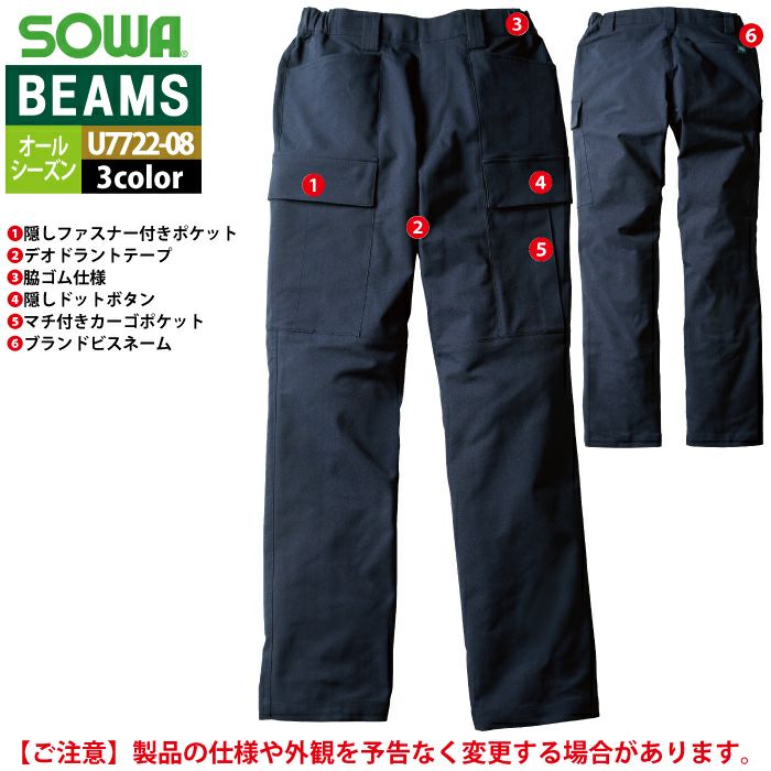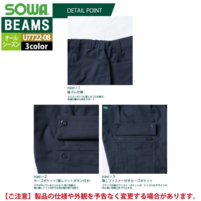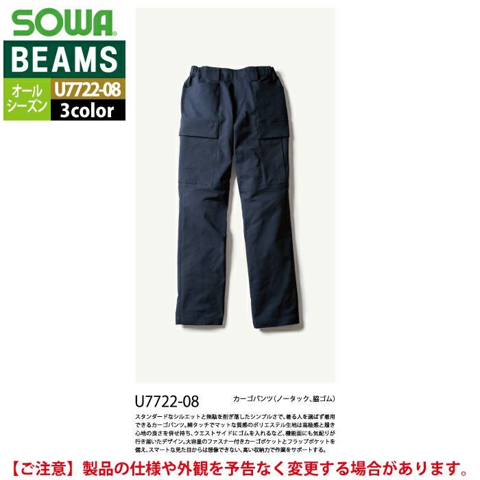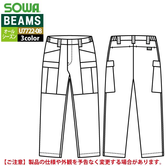 作業服 作業着 作業ズボン 秋冬用 BEAMS ビームス 桑和 SOWA 作業服 U7722-08 カーゴパンツ S-LL オールシーズン 作業着 ソーワ ワークウェア BEAMS ビームス
