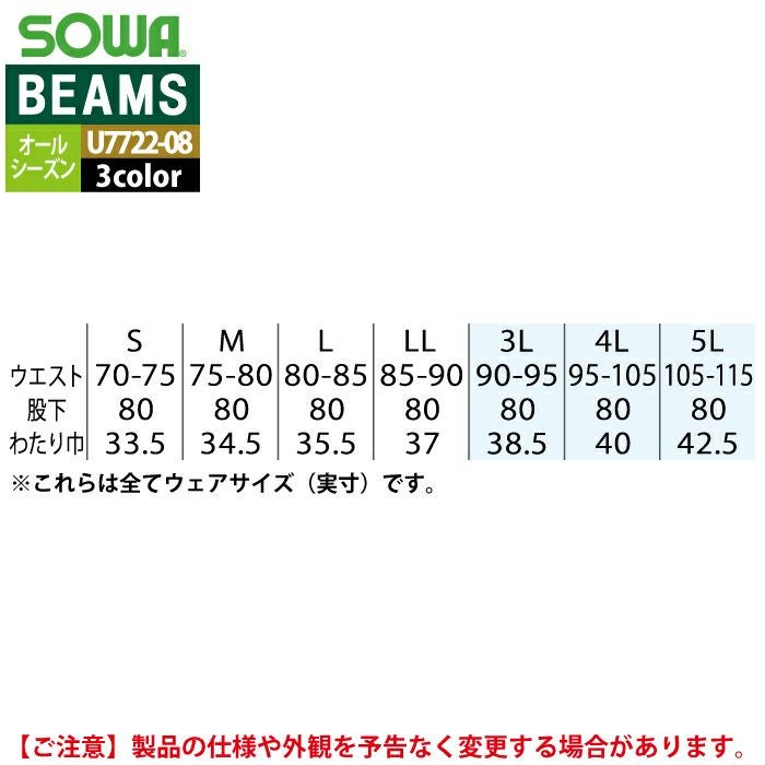 作業服 作業着 作業ズボン 秋冬用 BEAMS ビームス 桑和 SOWA 作業服 U7722-08 カーゴパンツ 3L オールシーズン 作業着 ソーワ ワークウェア BEAMS ビームス