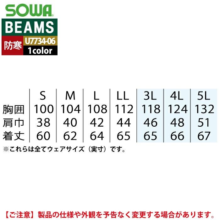作業服 作業着 防寒着 秋冬用 BEAMS ビームス 桑和 SOWA 防寒着 U7734-06 防寒ベスト S-LL 秋冬 作業服 作業着 ソーワ ワークウェア BEAMS ビームス