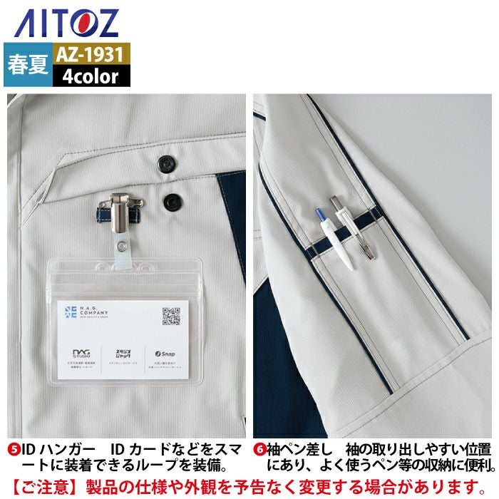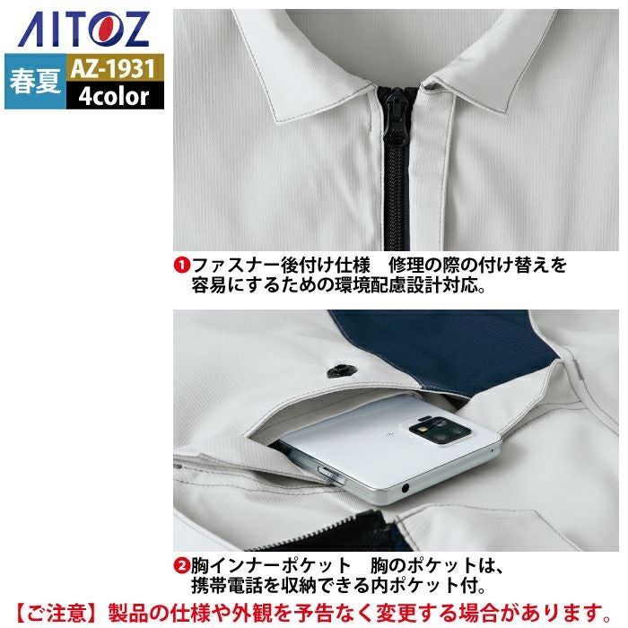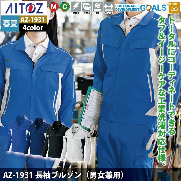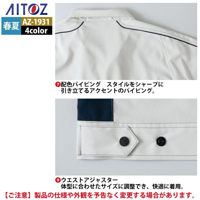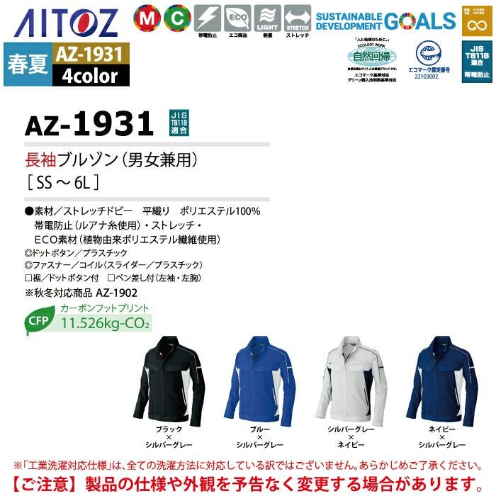作業服 作業着 アイトス Aitoz 作業服 AZ-1931 長袖ブルゾン SS-LL 春夏用