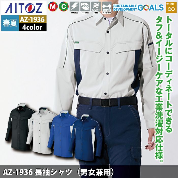 作業服 作業着 アイトス Aitoz 作業服 AZ-1936 長袖シャツ SS-LL 春夏用
