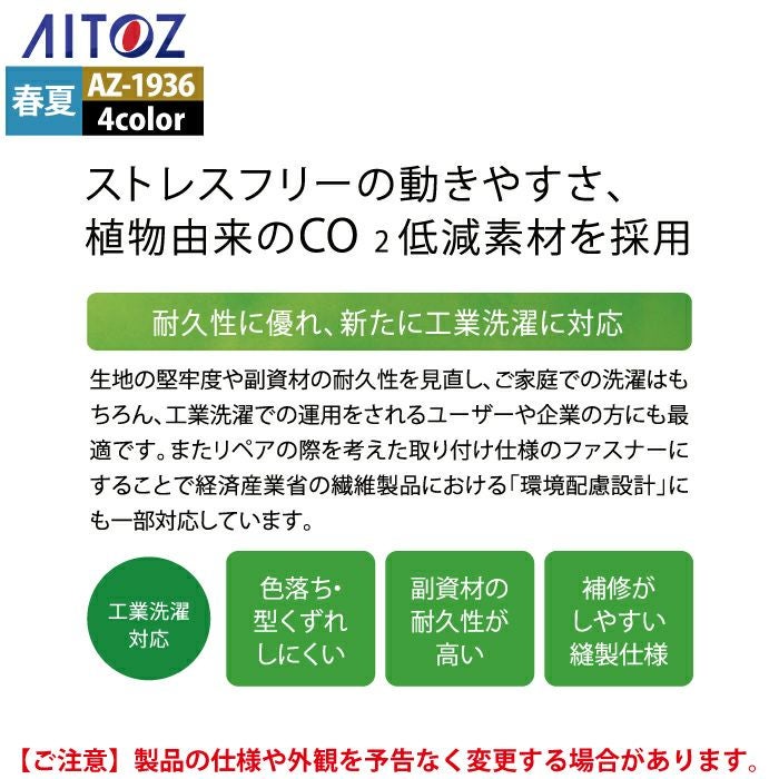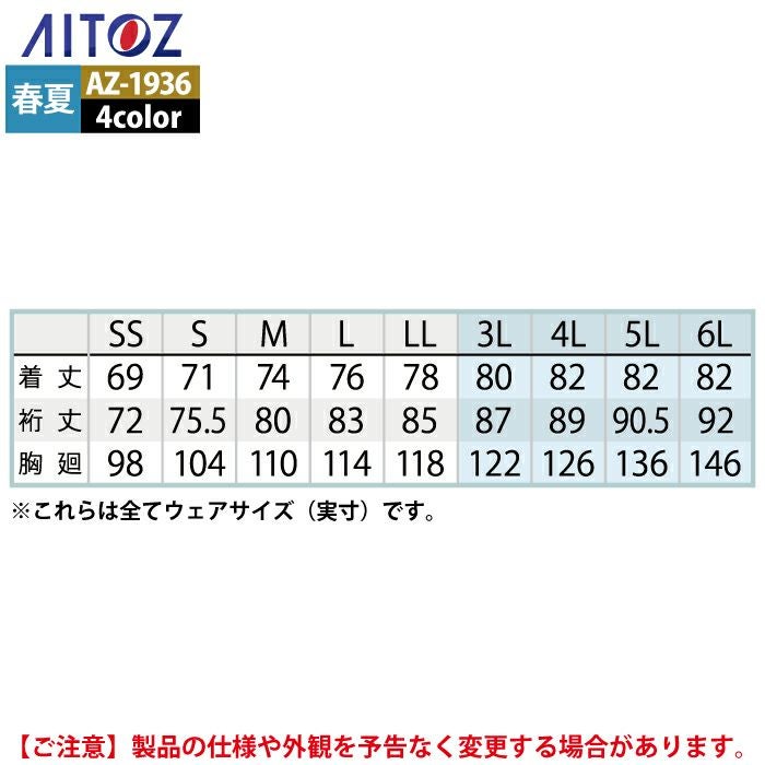 作業服 作業着 アイトス Aitoz 作業服 AZ-1936 長袖シャツ 3L 春夏用
