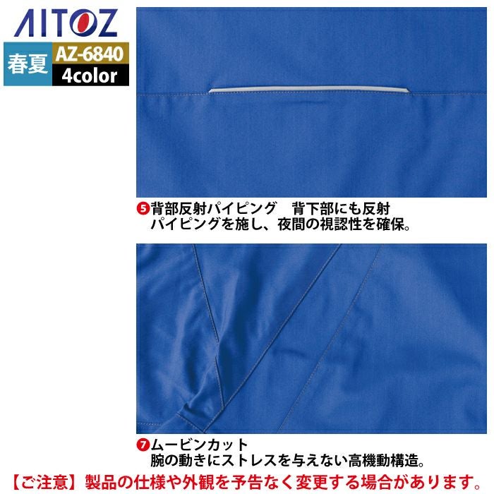 作業服 作業着 アイトス Aitoz 作業服 AZ-6840 長袖ブルゾン 6L 春夏用