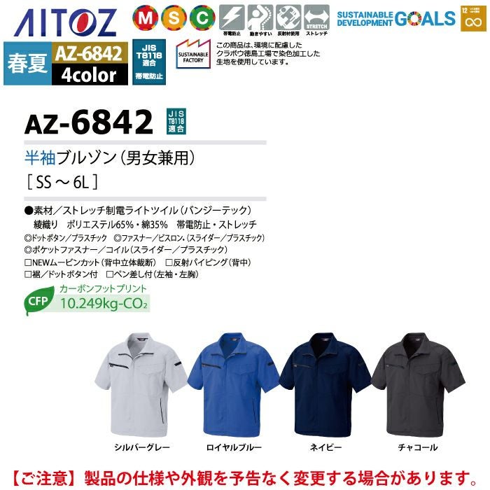 作業服 作業着 アイトス Aitoz 作業服 AZ-6842 半袖ブルゾン SS-LL 春夏用