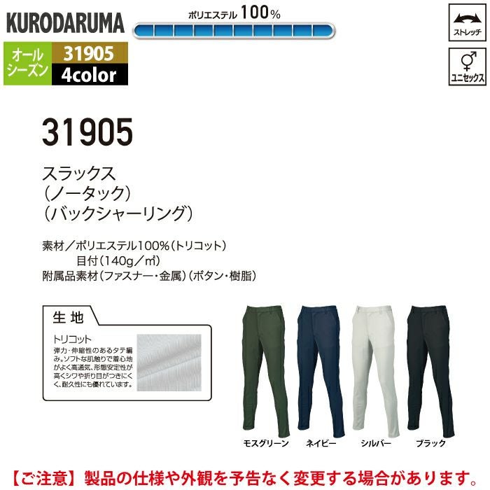 作業服 作業着 春夏 クロダルマ 作業服 春夏 31905 スラックス SS-LL 作業着 作業ズボン