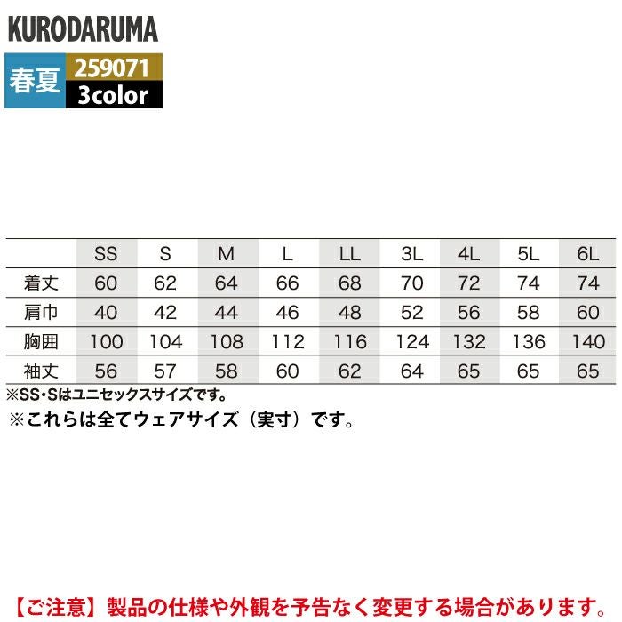 作業服 作業着 春夏 クロダルマ 作業服 春夏 259071 長袖ジャンパー SS-LL 作業着