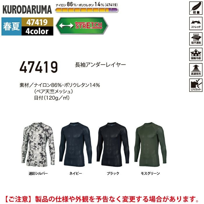 作業服 作業着 春夏 クロダルマ 作業服 春夏 47419 長袖アンダーレイヤー S-LL インナー 作業着