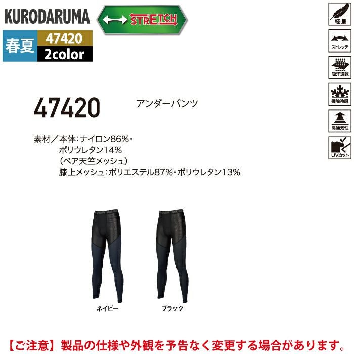 作業服 作業着 春夏 クロダルマ 作業服 春夏 47420 アンダーパンツ M-LL インナー 作業着
