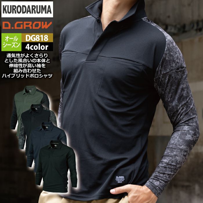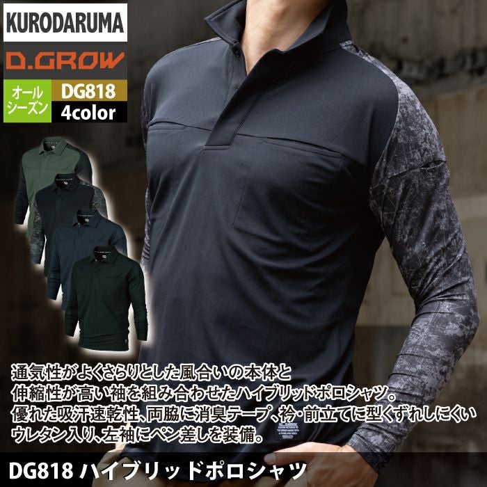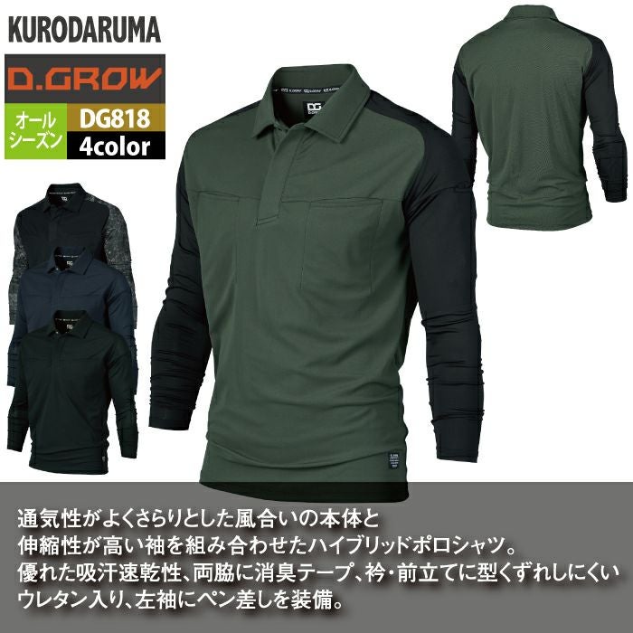 作業服 作業着 春夏 クロダルマ 作業服 DG818 ハイブリッドポロシャツ S-LL オールシーズン 作業着