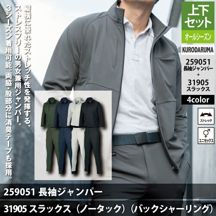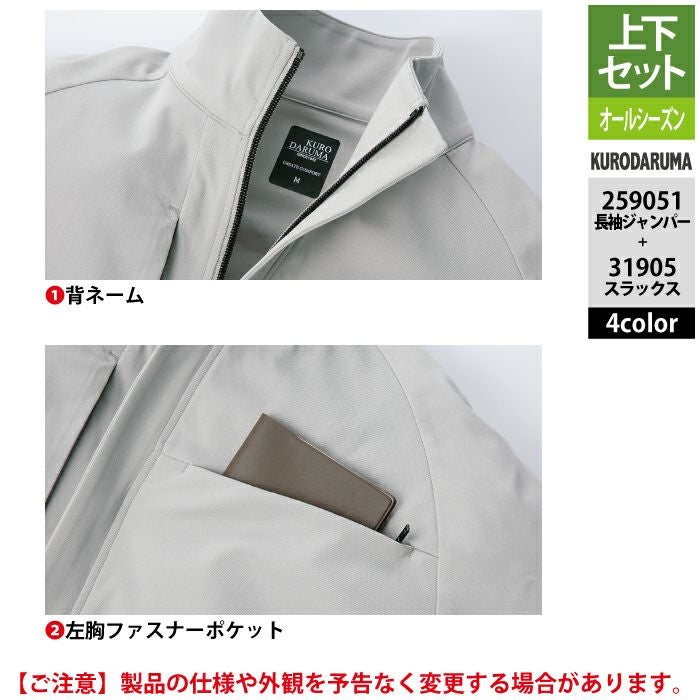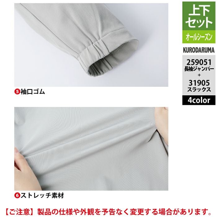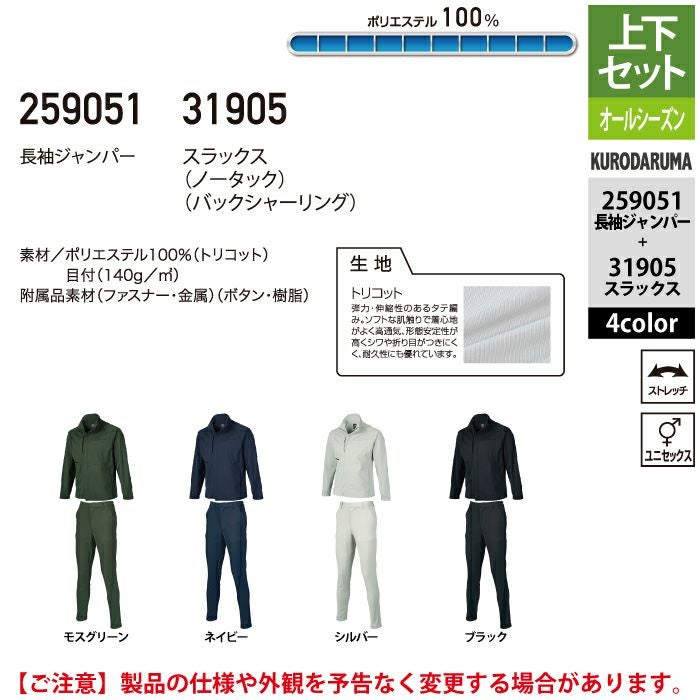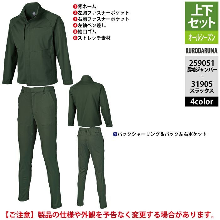 作業服 作業着 春夏 クロダルマ 作業服 上下セット 春夏 259051 長袖ジャンパーS-3L と 31905 スラックス SS-3L 作業着 作業ズボン