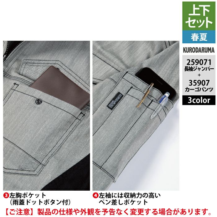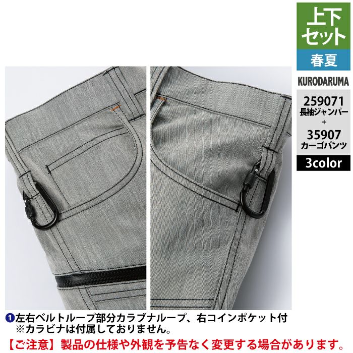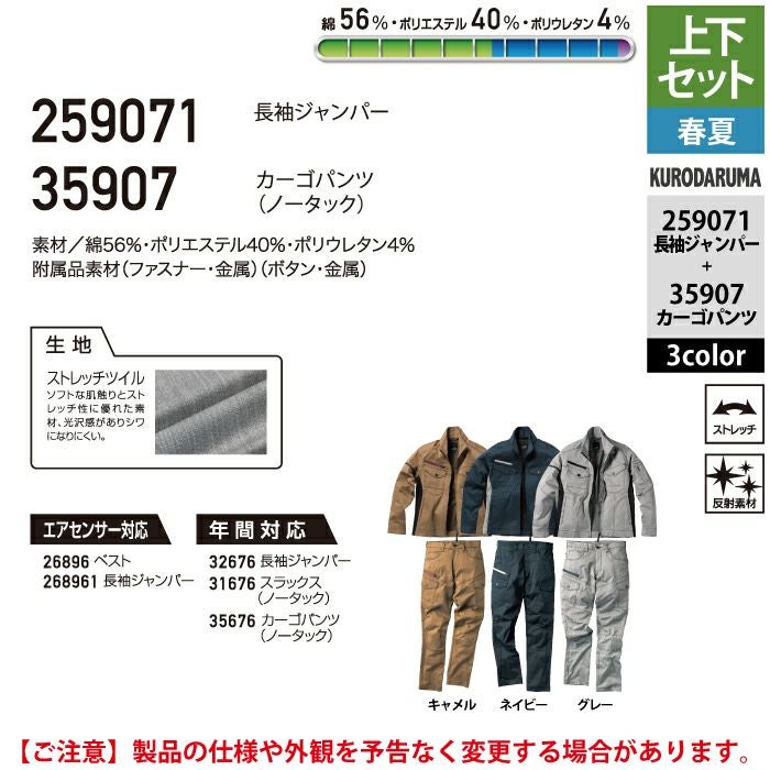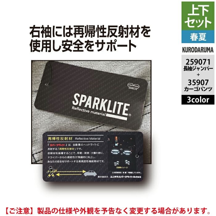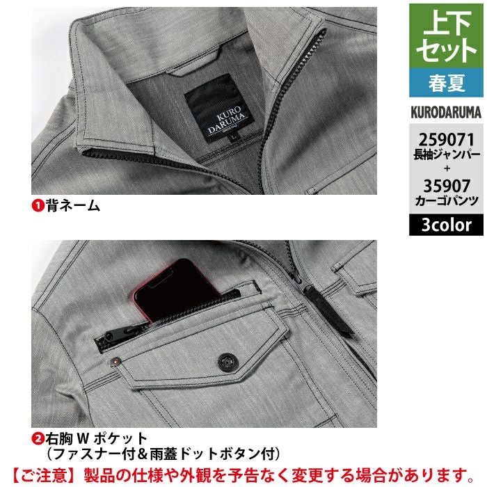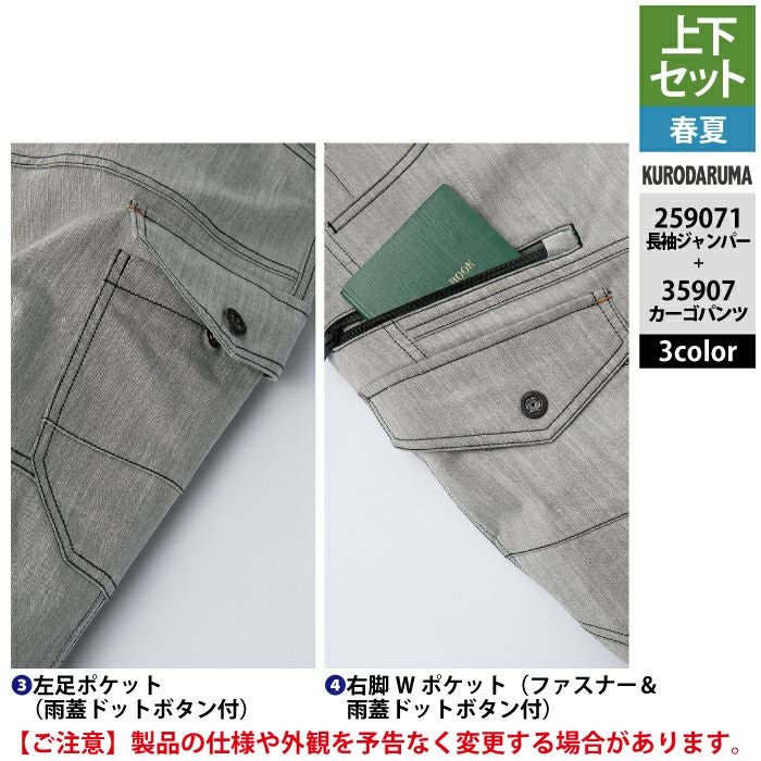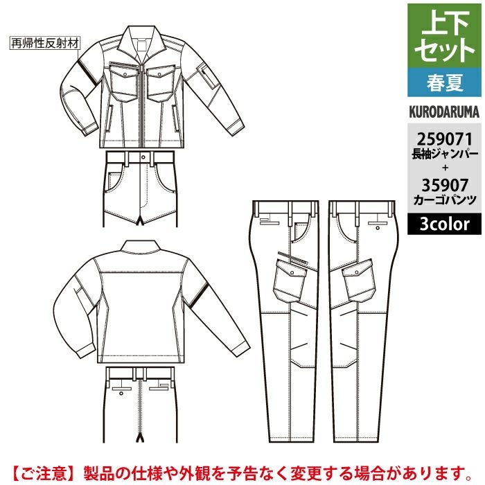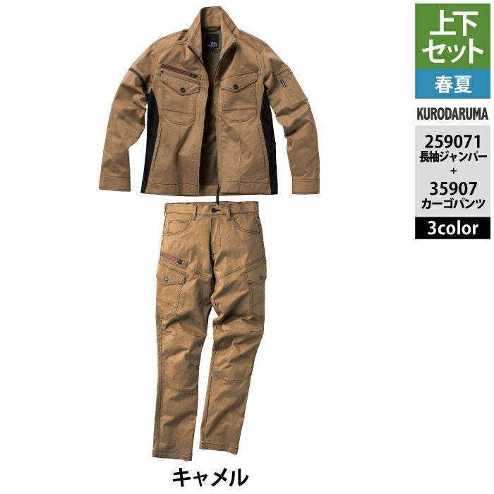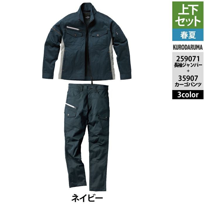 作業服 作業着 春夏 クロダルマ 作業服 上下セット 春夏 259071 長袖ジャンパーSS-3L と 35907 カーゴパンツ 70-10 作業着 作業ズボン