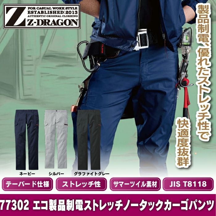 自重堂 作業服 作業着 自重堂 Z-DRAGON ジードラゴン 作業服 春夏 77302 エコ製品制電ストレッチノータックカーゴパンツ 91-106 作業ズボン 作業着