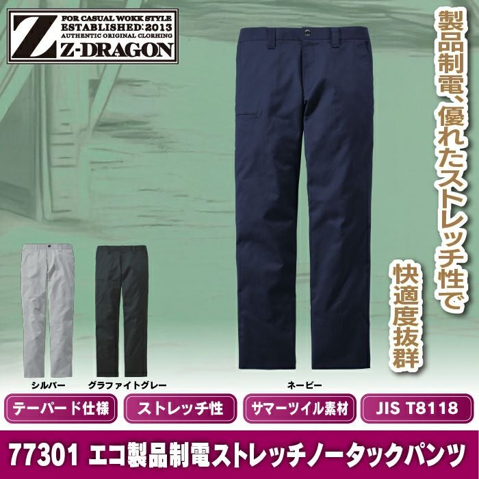自重堂 作業服 作業着 自重堂 Z-DRAGON ジードラゴン 作業服 春夏 77301 エコ製品制電ストレッチノータックパンツ 91-106 作業ズボン 作業着