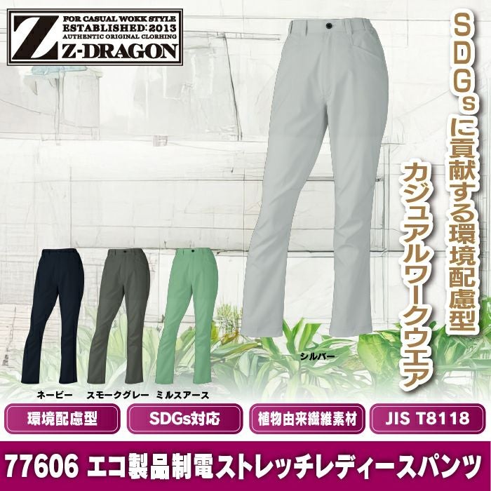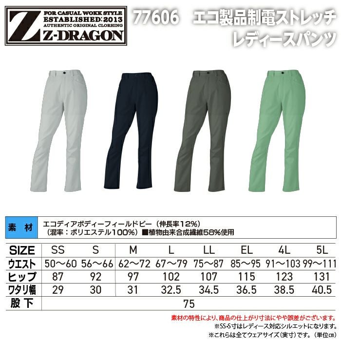自重堂 作業服 作業着 自重堂 Z-DRAGON ジードラゴン 作業服 春夏 77606 エコ製品制電ストレッチレディースパンツ(裏付) SS-LL 作業ズボン 作業着