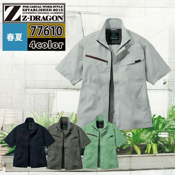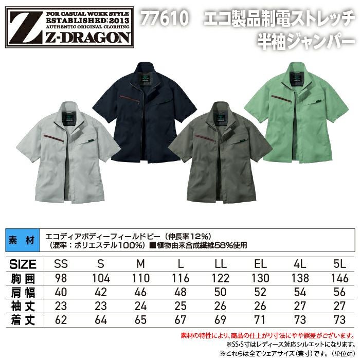 自重堂 作業服 作業着 自重堂 Z-DRAGON ジードラゴン 作業服 春夏 77610 エコ製品制電ストレッチ半袖ジャンパー SS-LL 作業着