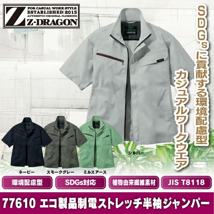 自重堂 作業服 作業着 自重堂 Z-DRAGON ジードラゴン 作業服 春夏 77610 エコ製品制電ストレッチ半袖ジャンパー EL 作業着