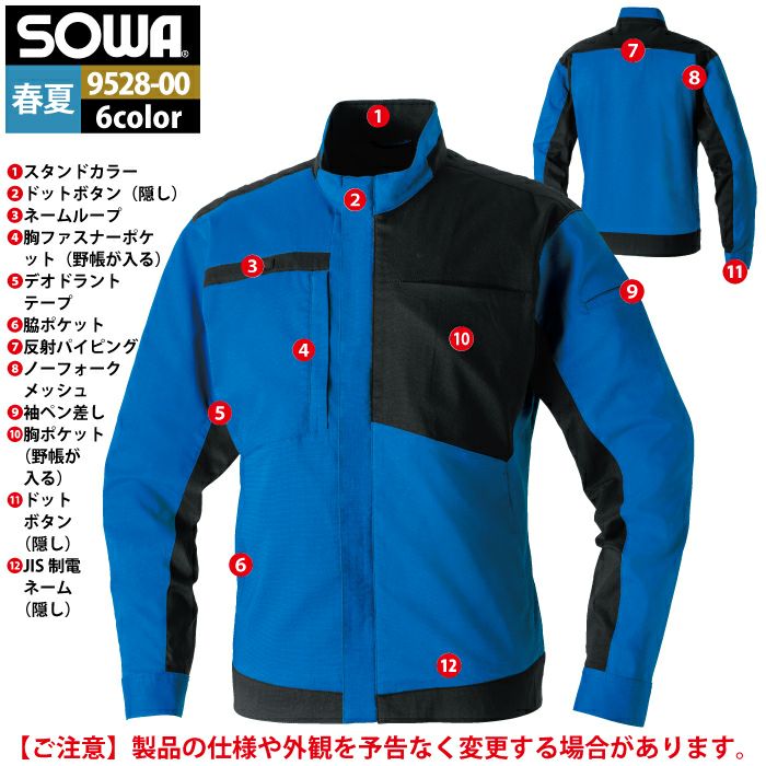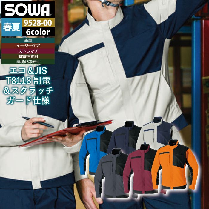 桑和 SOWA 作業服 作業着 作業ズボン 桑和 SOWA 作業服 9528-00 長袖ブルゾン SS-LL 作業着 春夏