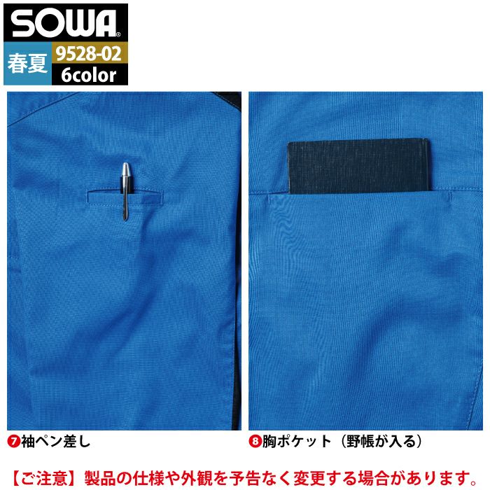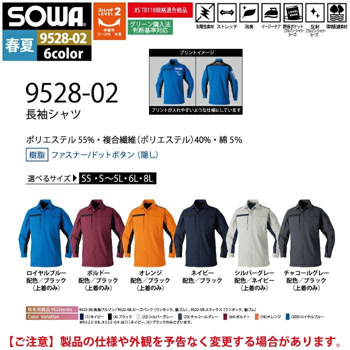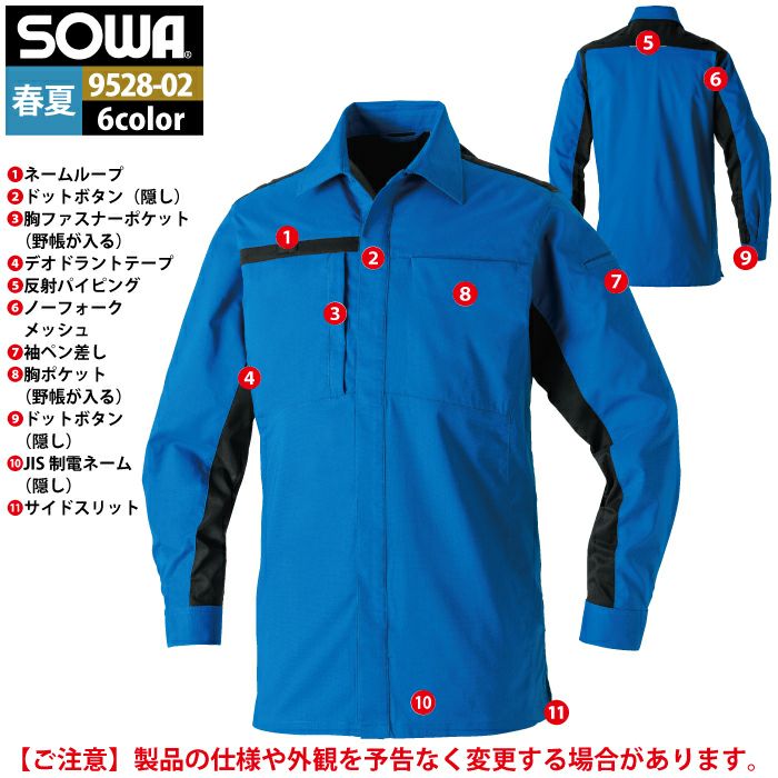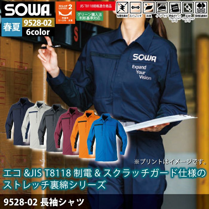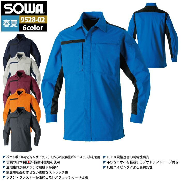 桑和 SOWA 作業服 作業着 作業ズボン 桑和 SOWA 作業服 9528-02 長袖シャツ SS-LL 作業着 春夏