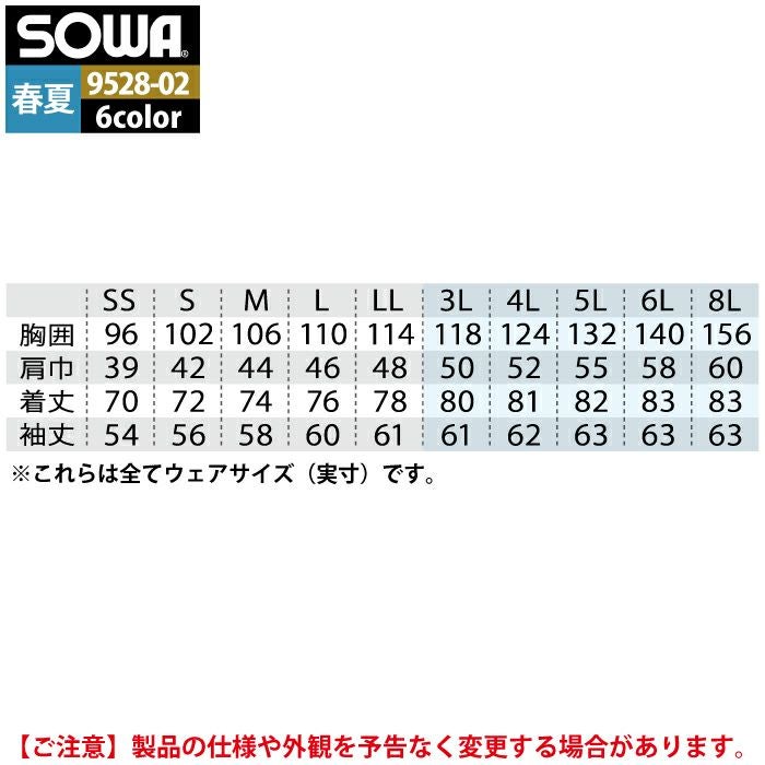 桑和 SOWA 作業服 作業着 作業ズボン 桑和 SOWA 作業服 9528-02 長袖シャツ 8L 作業着 春夏