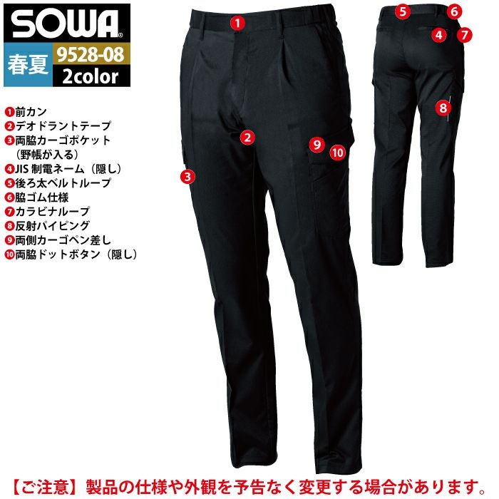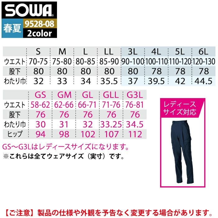 桑和 SOWA 作業服 作業着 作業ズボン 桑和 SOWA 作業服 作業ズボン 9528-08 カーゴパンツ GS-LL 作業着 春夏