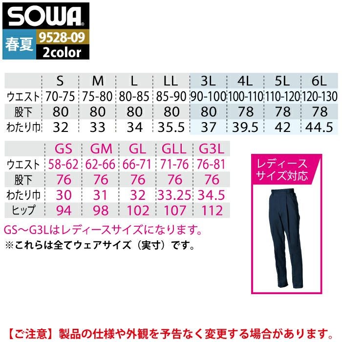 桑和 SOWA 作業服 作業着 作業ズボン 桑和 SOWA 作業服 作業ズボン 9528-09 スラックス GS-6L 作業着 春夏
