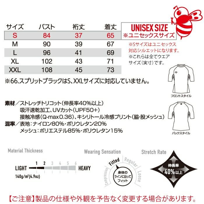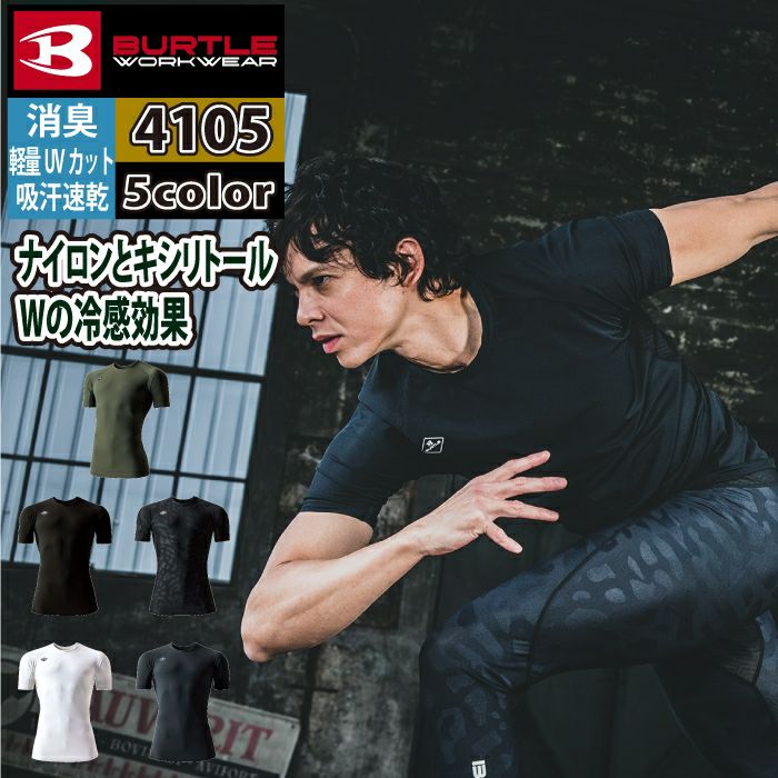 ユニセックス UV 吸汗速乾 バートル BURTLE 作業着 インナー 2025春夏新作 4105 半袖アイスフィッテッド S-XXL 作業服 おしゃれ ドライ 冷感