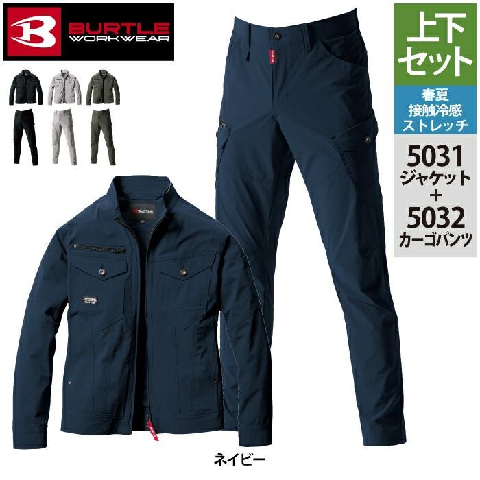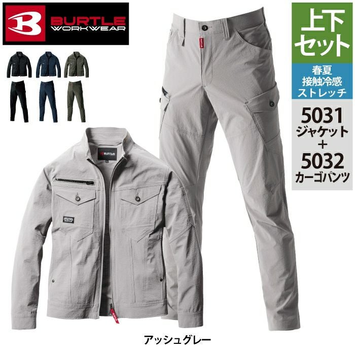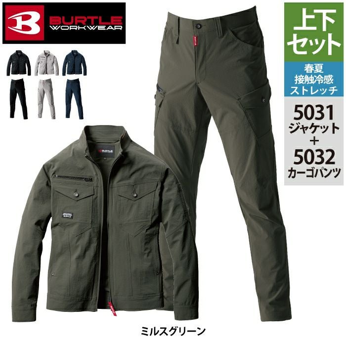 ユニセックス ストレッチ バートル BURTLE 作業着 上下セット 5031 ジャケット S-3L と 5032 カーゴパンツ SS-3L 作業ズボン 作業服 おしゃれ 春夏