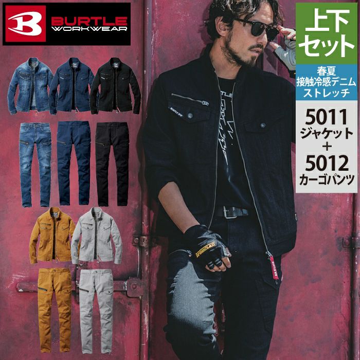 ユニセックス ストレッチ バートル BURTLE 作業着 上下セット 5011 ジャケット M-3L と 5012 カーゴパンツ SS-3L 作業ズボン 作業服 おしゃれ 春夏