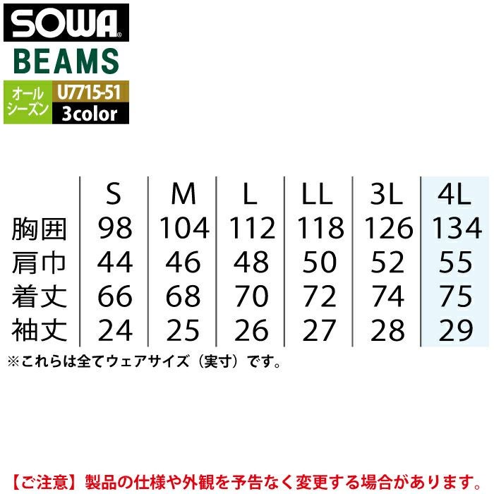 桑和 SOWA 作業服 作業着 作業ズボン 桑和 SOWA 作業服 インナー U7715-51 半袖ポロシャツ 4L 作業着 オールシーズン
