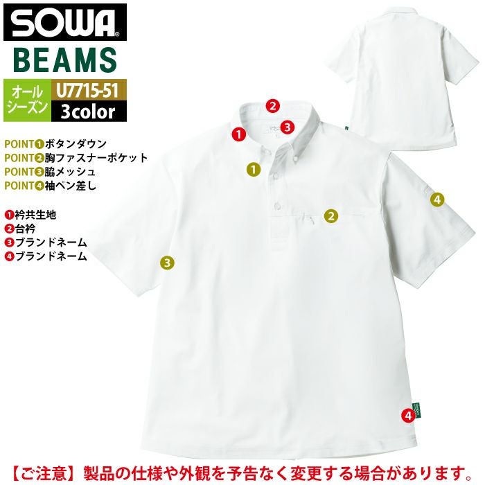 桑和 SOWA 作業服 作業着 作業ズボン 桑和 SOWA 作業服 インナー U7715-51 半袖ポロシャツ S-3L 作業着 オールシーズン