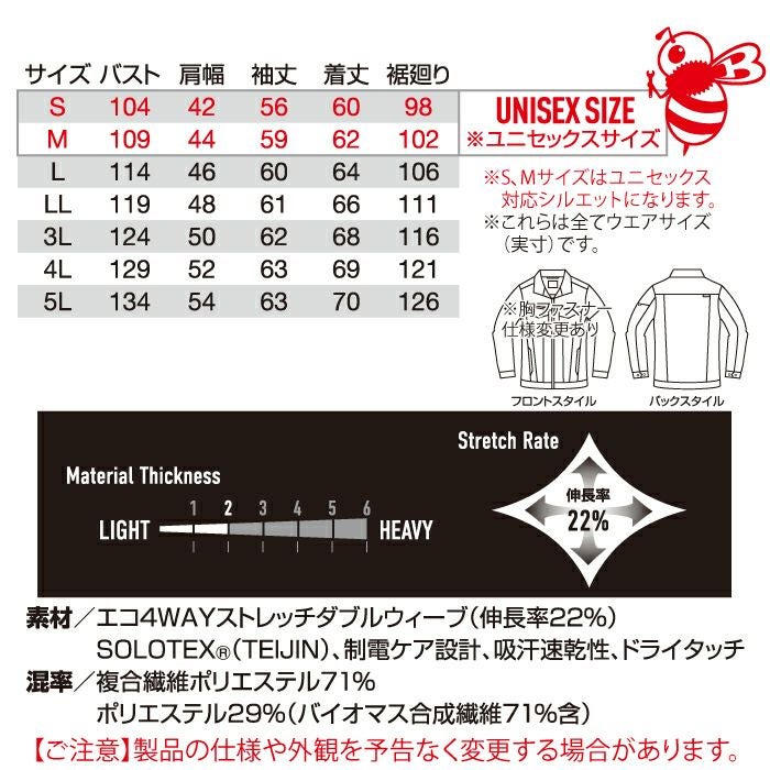 SDGs ユニセックス 吸汗速乾 バートル BURTLE 作業着 2025春夏新作 1901 ジャケット 5L 作業服 おしゃれ JIS適合制電 ドライ