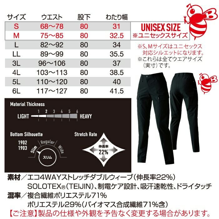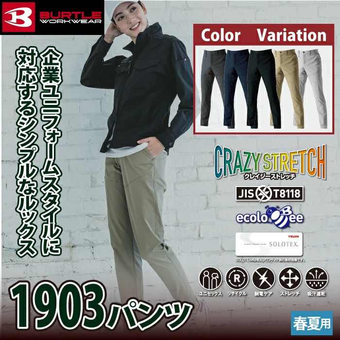 SDGs ユニセックス 吸汗速乾 バートル BURTLE 作業着 作業ズボン 2025春夏新作 1903 パンツ 4L 作業服 おしゃれ JIS適合制電 ドライ