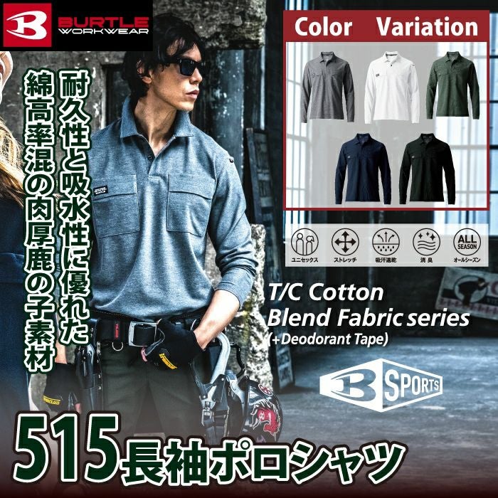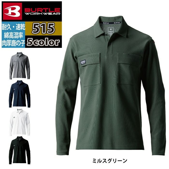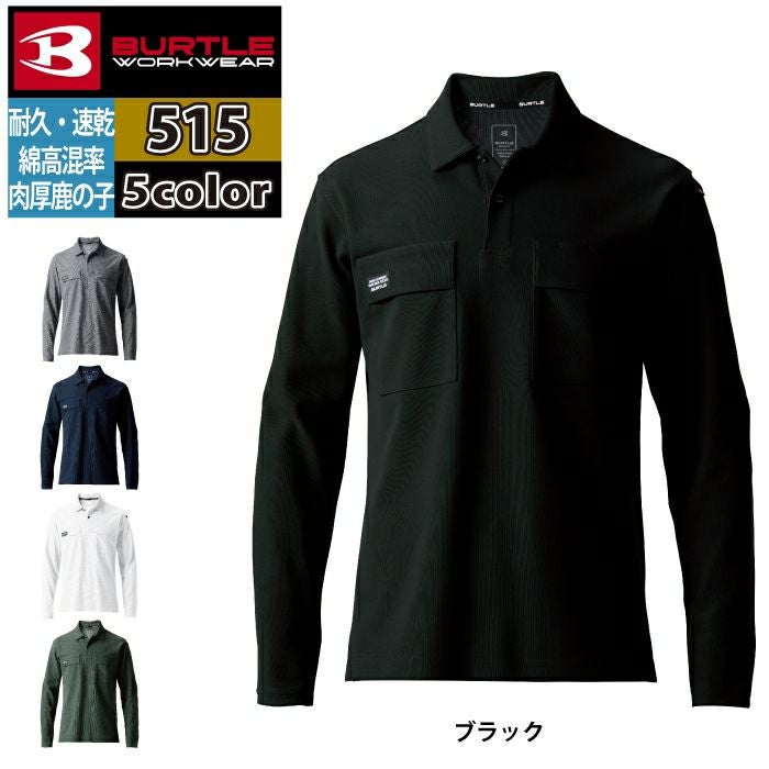 ユニセックス 吸汗速乾 鹿の子 バートル BURTLE 作業着 インナー 2025春夏新作 515 長袖ポロシャツ S-3L 作業服 おしゃれ ドライ 消臭 シャツ