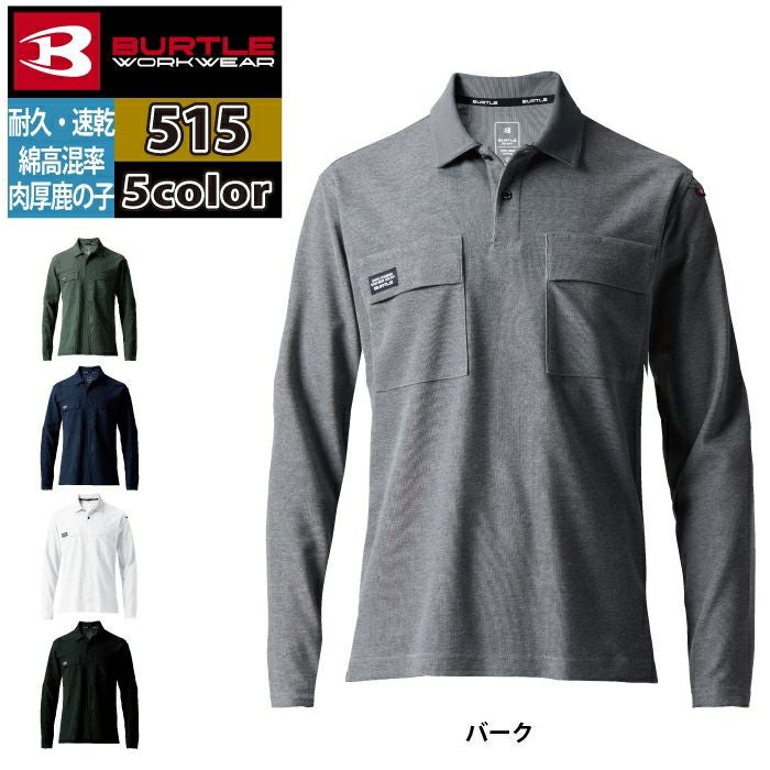 ユニセックス 吸汗速乾 鹿の子 バートル BURTLE 作業着 インナー 2025春夏新作 515 長袖ポロシャツ 4L 作業服 おしゃれ ドライ 消臭 シャツ