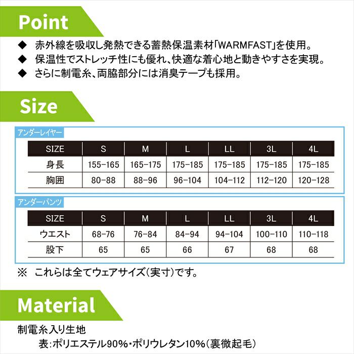作業服 作業着 作業ズボン クロダルマ 作業服 上下セット 47421 長袖アンダーレイヤーS-3L と 47422 アンダーパンツ S-3L インナー 作業着 作業ズボン