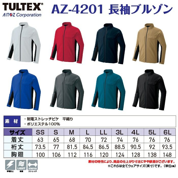 作業服 作業着 アイトス Aitoz 作業服 AZ-4201 長袖ブルゾン ユニセックス 4L 秋冬 作業着