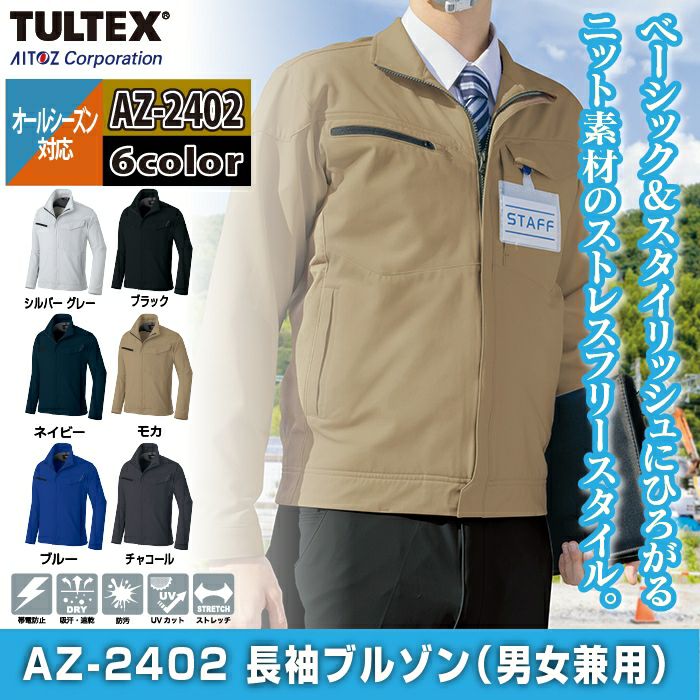 作業服 作業着 アイトス Aitoz 作業服 AZ-2402 長袖ブルゾン ユニセックス SS-LL オールシーズン 作業着
