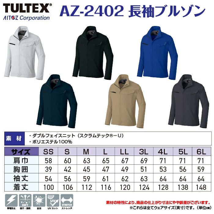 作業服 作業着 アイトス Aitoz 作業服 AZ-2402 長袖ブルゾン ユニセックス 3L オールシーズン 作業着