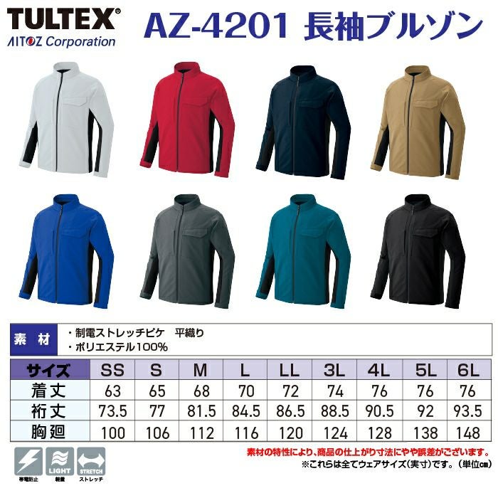 作業服 作業着 アイトス Aitoz 作業服 AZ-4201 長袖ブルゾン ユニセックス SS-LL 秋冬 作業着