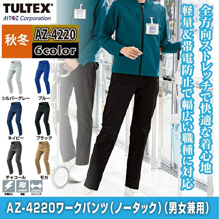 作業服 作業着 作業ズボン アイトス Aitoz 作業服 作業ズボン AZ-4220 ワークパンツ(ノータック) ユニセックス 3S-LL 秋冬 作業着