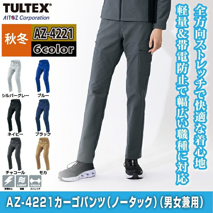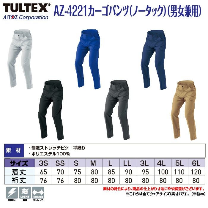 作業服 作業着 作業ズボン アイトス Aitoz 作業服 作業ズボン AZ-4221 カーゴパンツ(ノータック) ユニセックス 3S-LL 秋冬 作業着