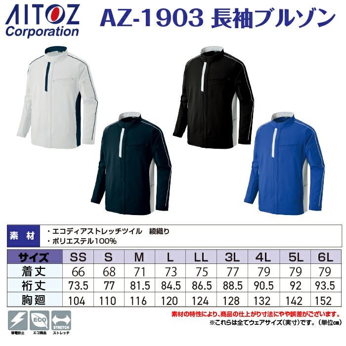 作業服 作業着 アイトス Aitoz 作業服 AZ-1903 長袖ジャケット ユニセックス SS-LL 秋冬 作業着