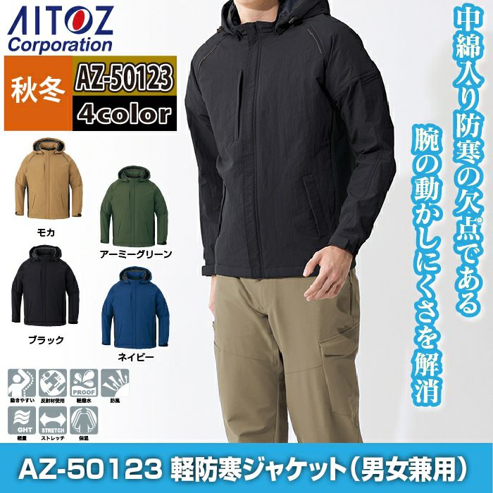 作業服 作業着 防寒着 アイトス Aitoz 作業服 防寒着 AZ-50123 軽防寒ジャケット ユニセックス 3S-LL 秋冬 作業着 防風 撥水 保温
