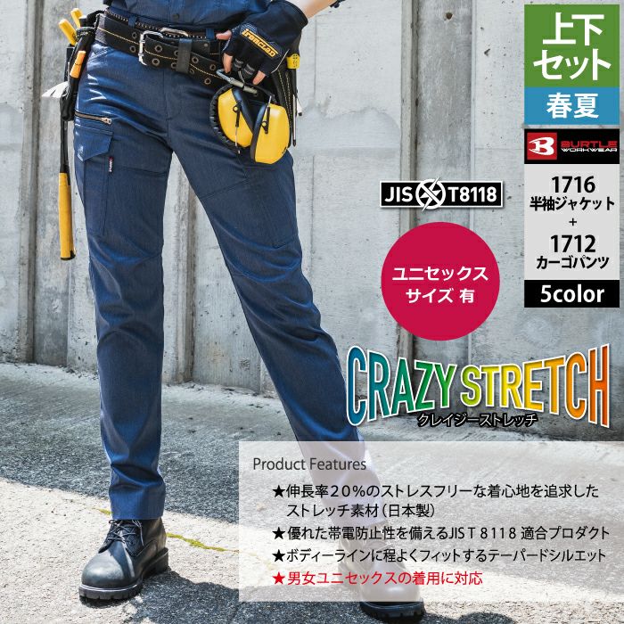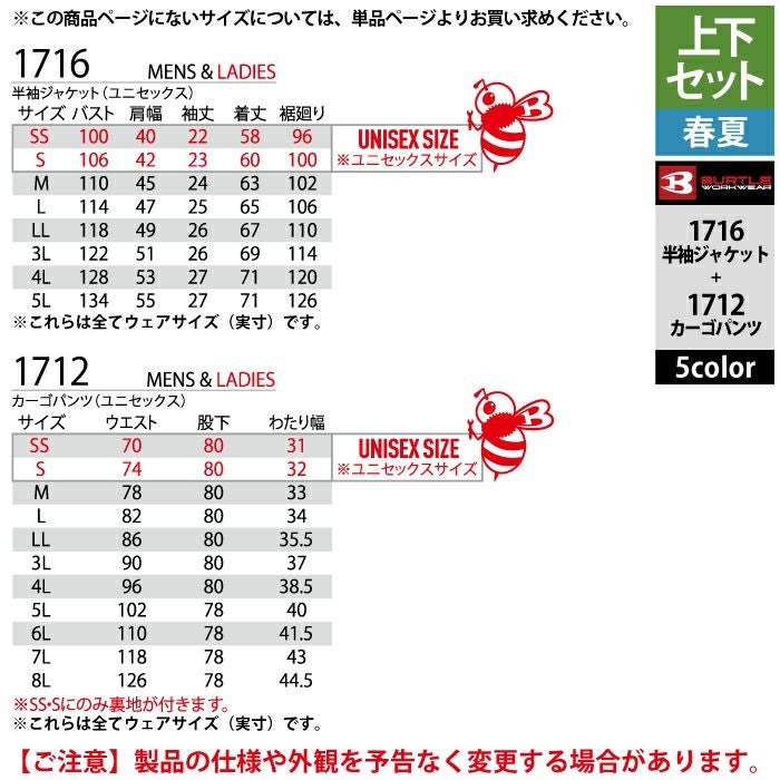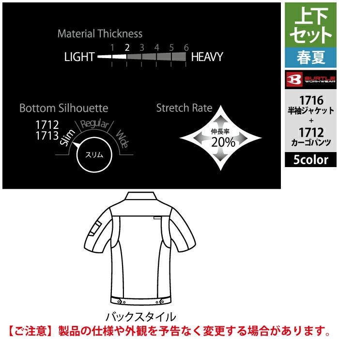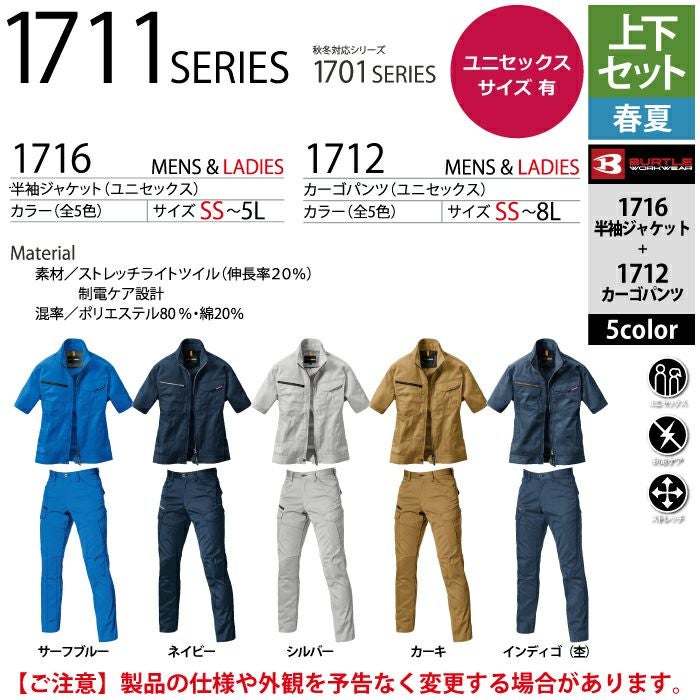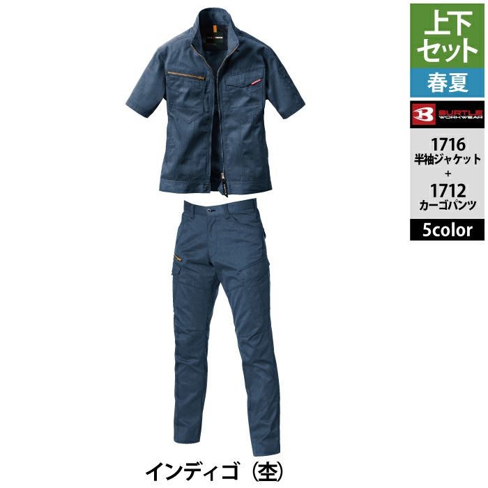 作業服 作業着 バートル ブルゾン 春夏用 バートル BURTLE 作業着 上下セット 1716 半袖ジャケット と 1712 カーゴパンツ S-LL 作業服 作業ズボン 春夏
