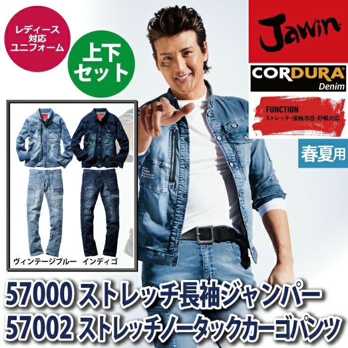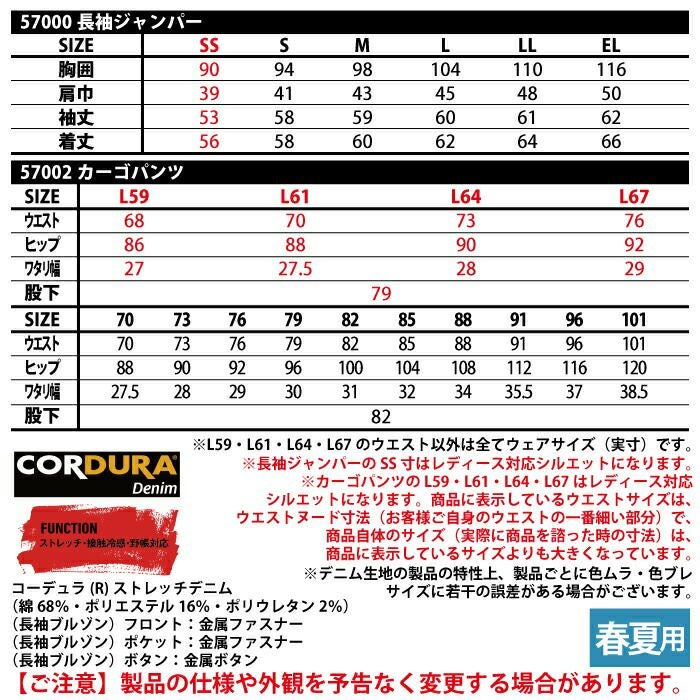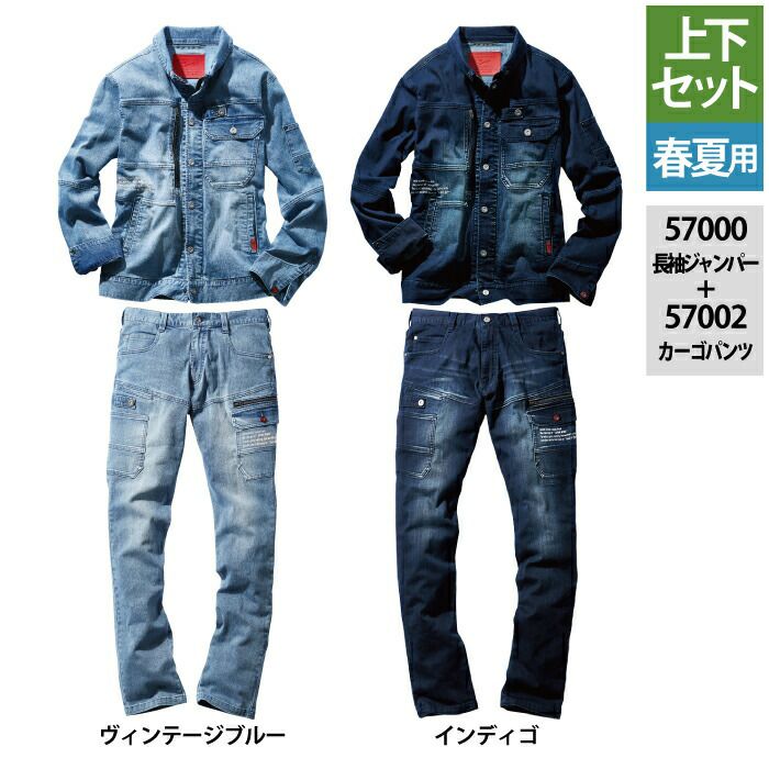 自重堂 作業服 作業着 作業ズボン 自重堂 作業服 上下セット 57000 ストレッチ長袖ジャンパー と 57002 ストレッチノータックカーゴパンツ SS-LL 春夏用 かっこいい おしゃれ 作業着