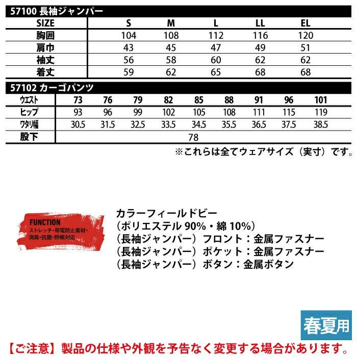自重堂 作業服 作業着 作業ズボン 自重堂 作業服 上下セット 57100 ストレッチ長袖ジャンパー と 57102 ストレッチノータックカーゴパンツ S-LL 春夏用 かっこいい おしゃれ 作業着