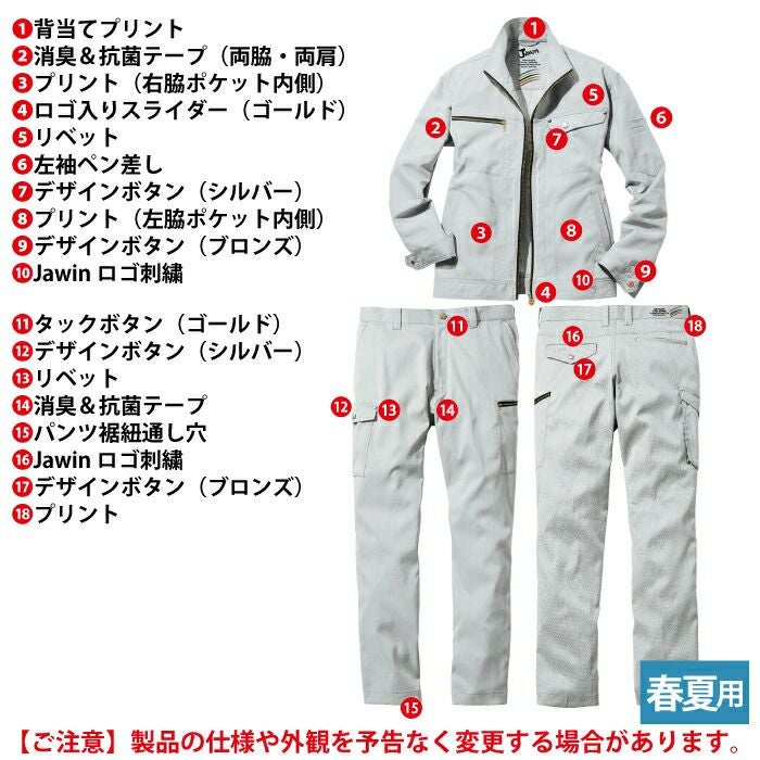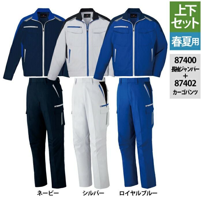 自重堂 作業服 作業着 作業ズボン 自重堂 作業服 上下セット 87400 抗ウイルス加工長袖ジャンパー と 87402 抗ウイルス加工ノータックカーゴパンツ SS-LL 春夏用 おしゃれ 作業着