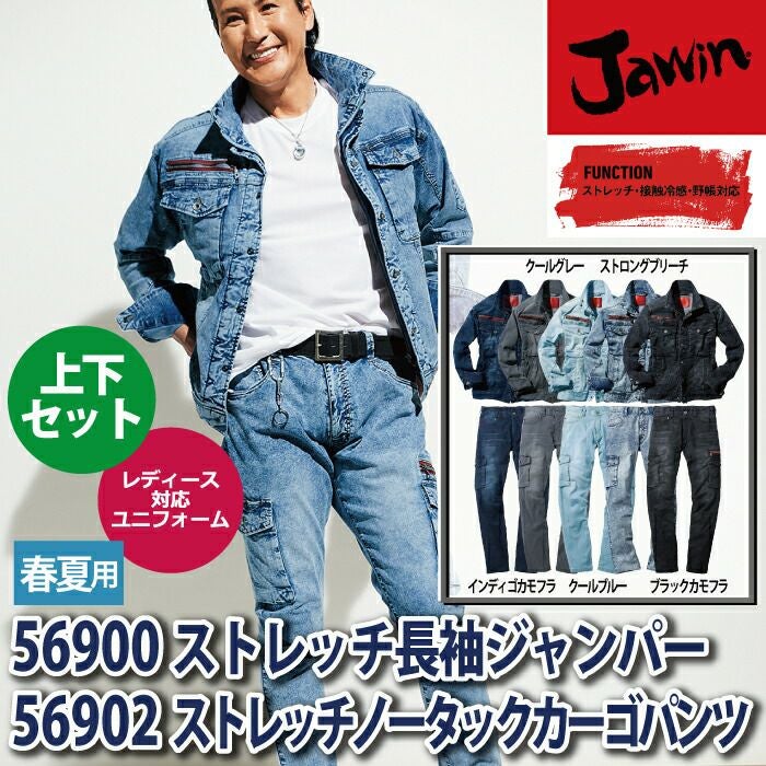 自重堂 作業服 作業着 作業ズボン 自重堂 作業服 上下セット 56900 ストレッチ長袖ジャンパー と 56902 ストレッチノータックカーゴパンツ S-LL 春夏用 かっこいい おしゃれ 作業着